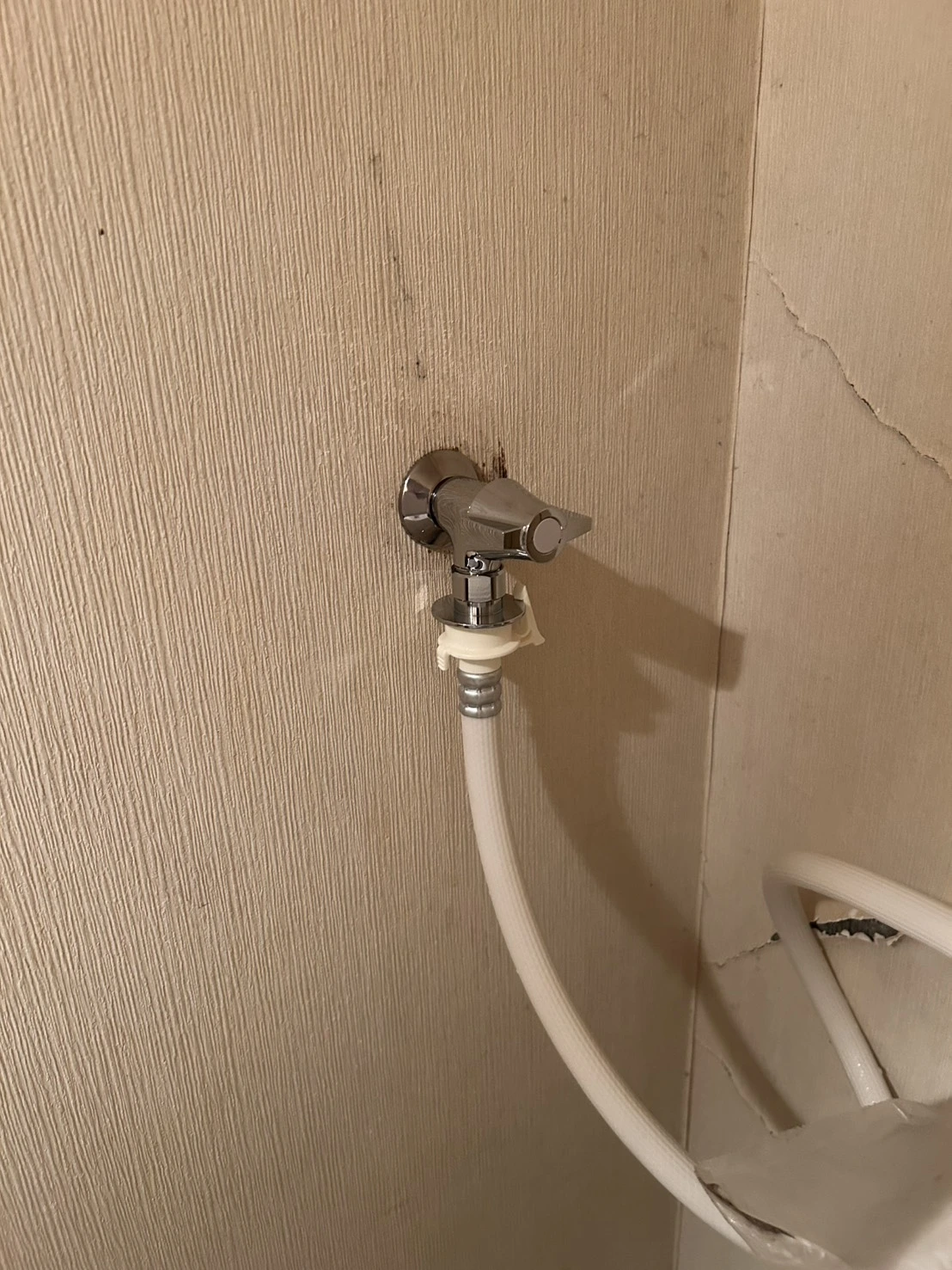 洗濯機の横にある蛇口から水漏れしているのに気づき、夜でしたが水まるさんに連絡しました。