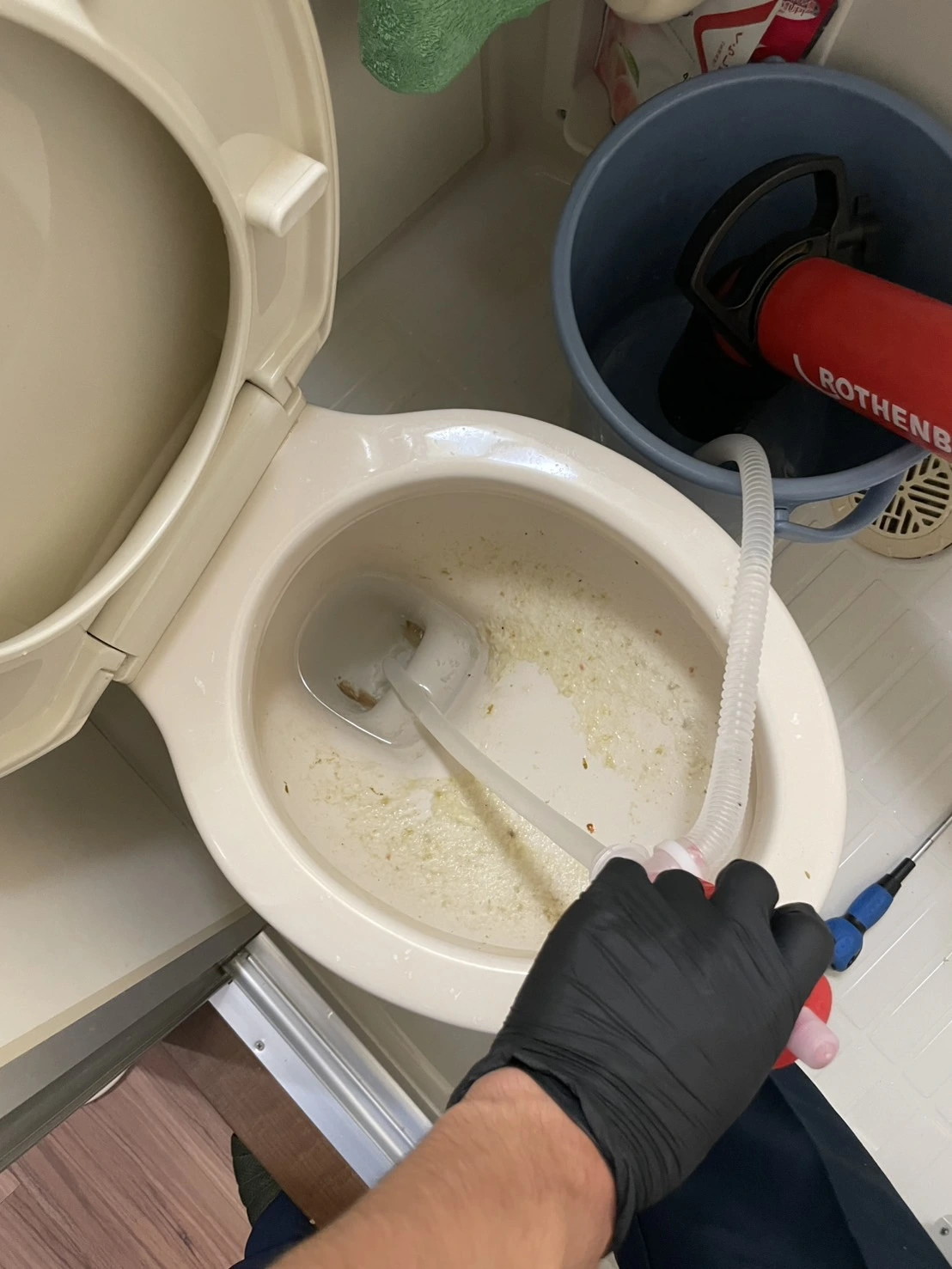 そのため、汚水の汲み取りを行った上で便器を一度取り外し、配管の奥に残っていた異物をワイヤー通貫で掻き出す工程を組み合わせ、根本的な解消を行いました。