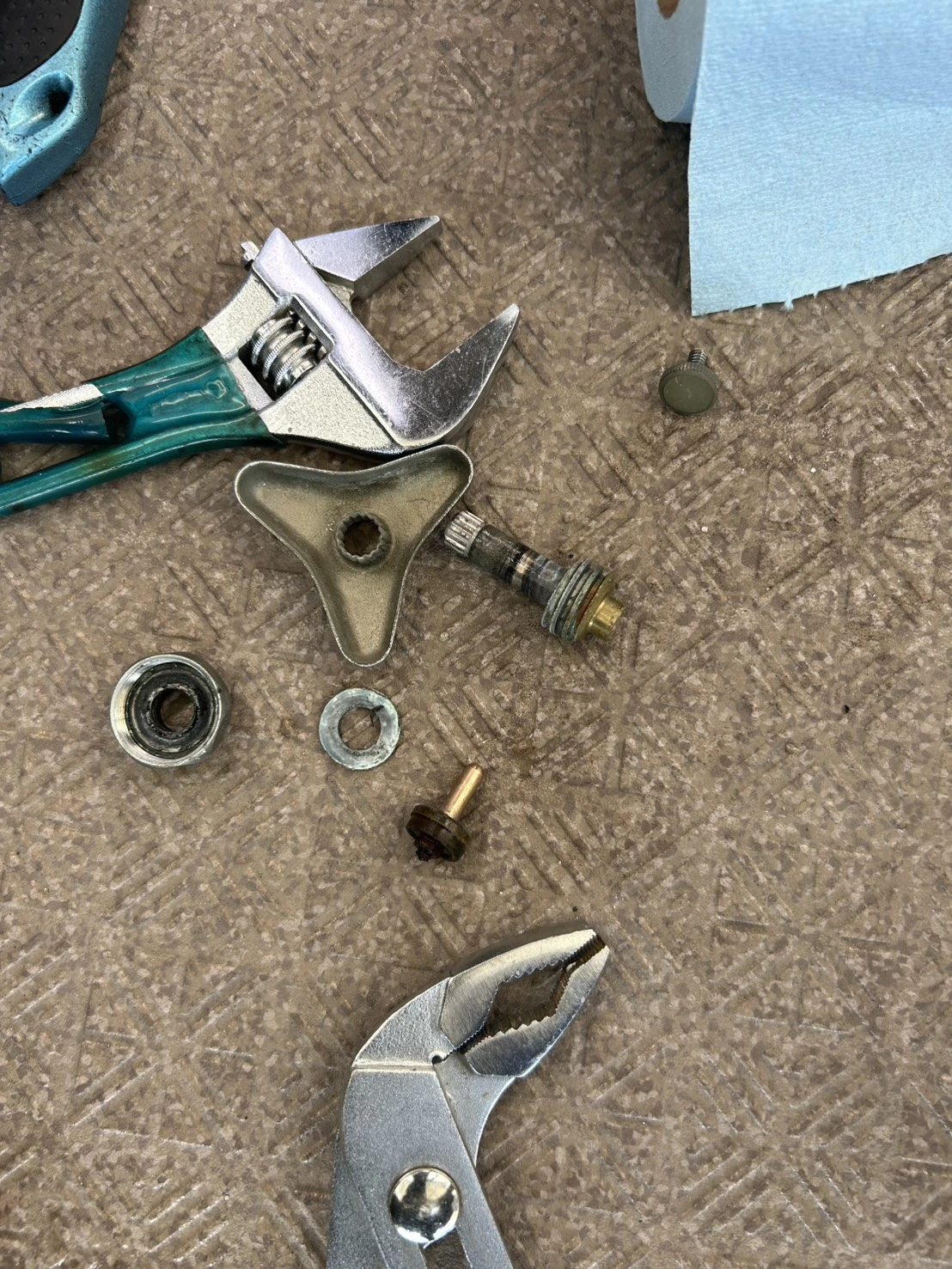 確認したところ、長年の使用による内部パッキンの摩耗が原因で、蛇口をしっかり閉めても水が止まらない状態となっていました。