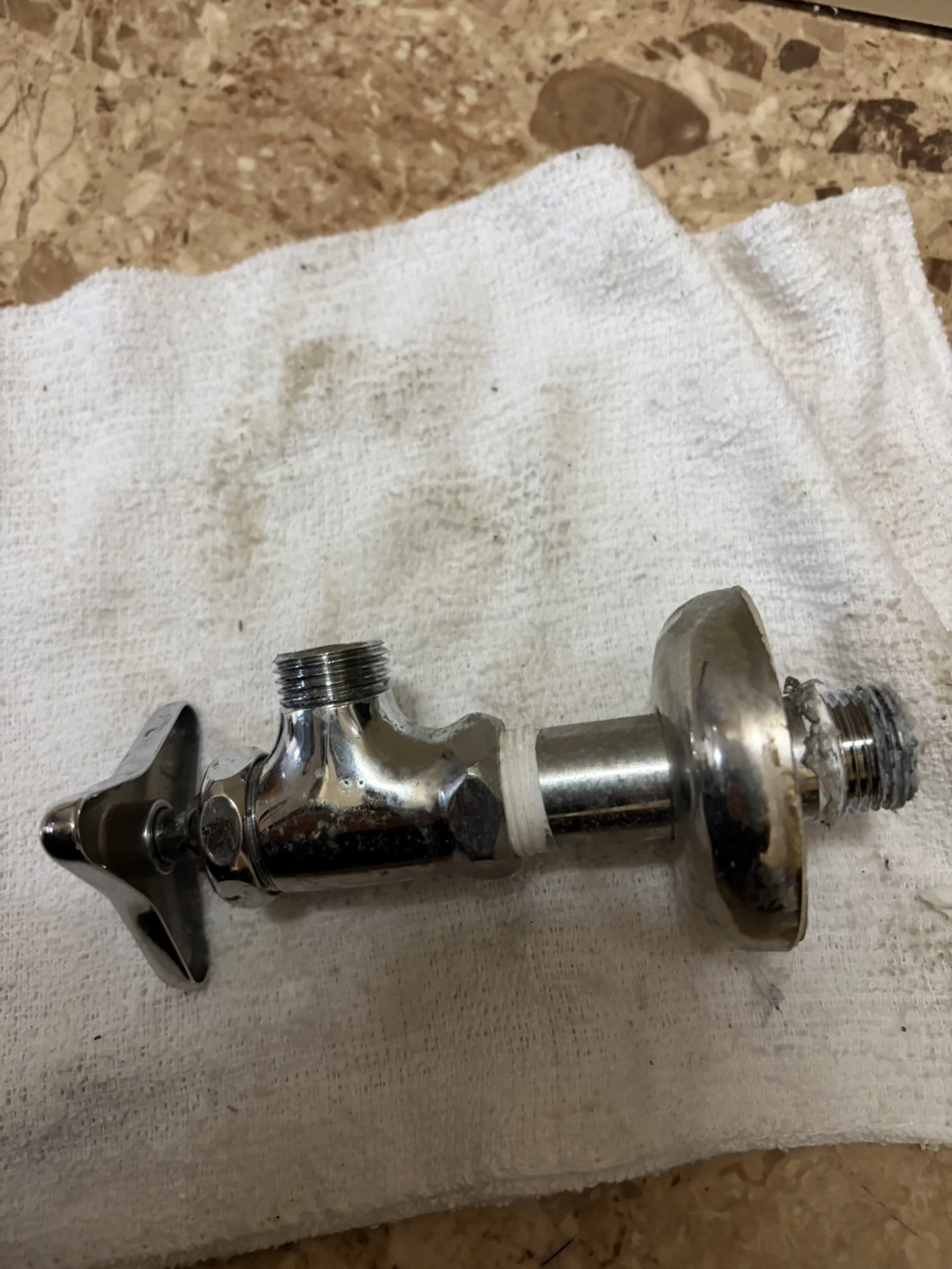 点検の結果、止水栓内部の劣化によりお湯側の流量が制限されていたため、止水栓交換を実施しております。