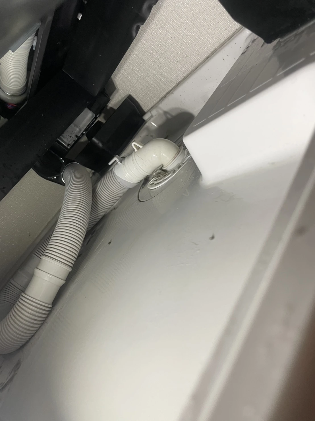 ホースの抜けかと思いましたが、どうやら排水管の奥で詰まっているようで自分ではどうにもできませんでした。