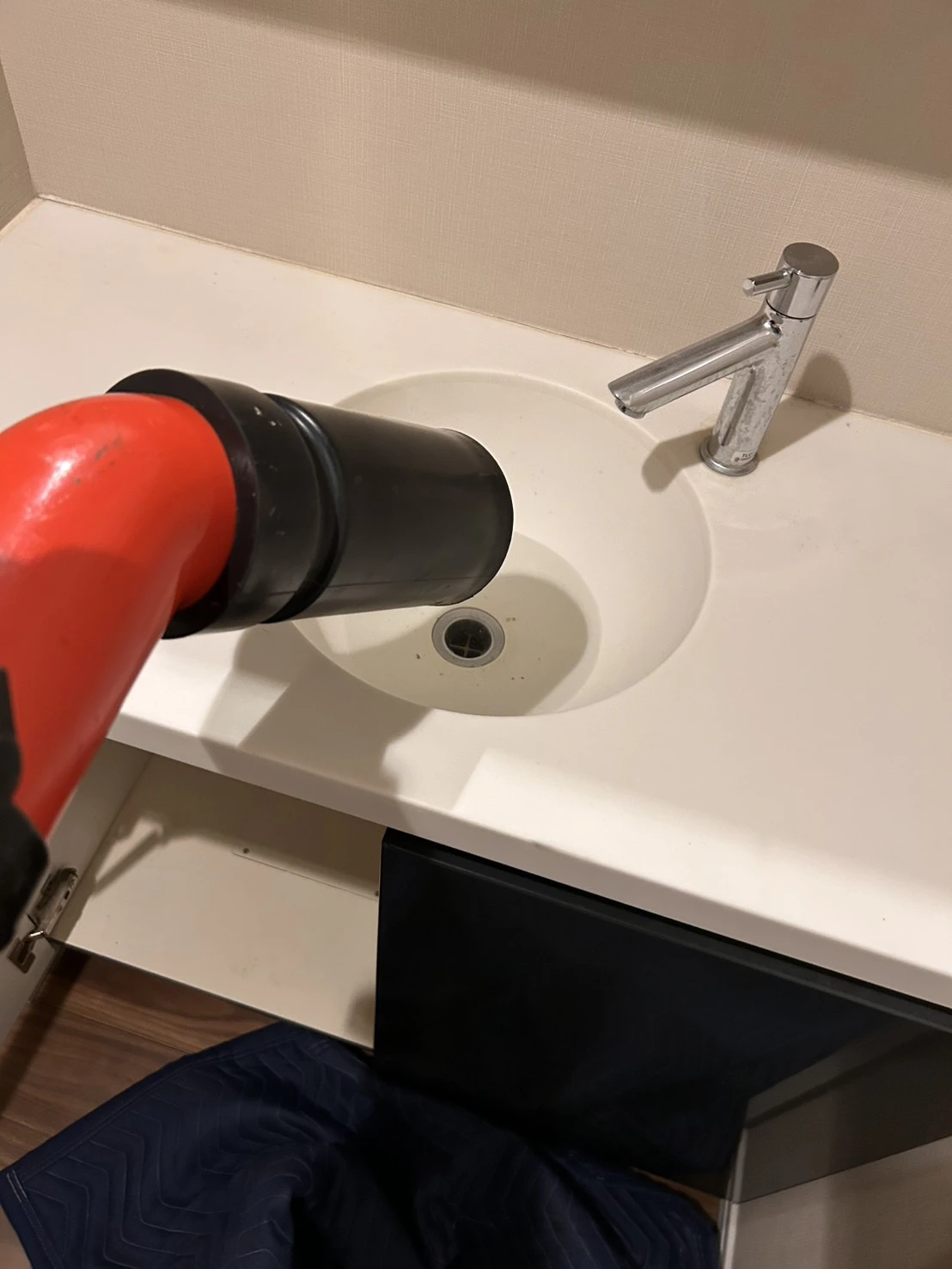 洗面所の水が流れない…ローポンプ作業でスッキリ解消!-渋谷区神宮前