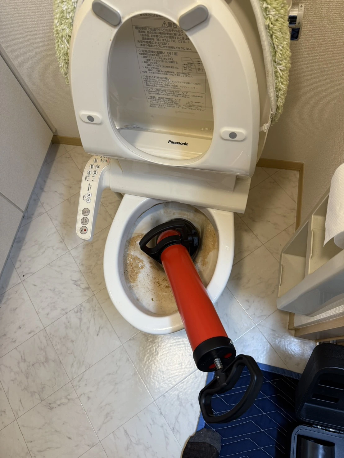 作業中も周りにタオルを敷いて丁寧に進めてくれていました。無事に流れるようになった時は本当にほっとしたという感じ。