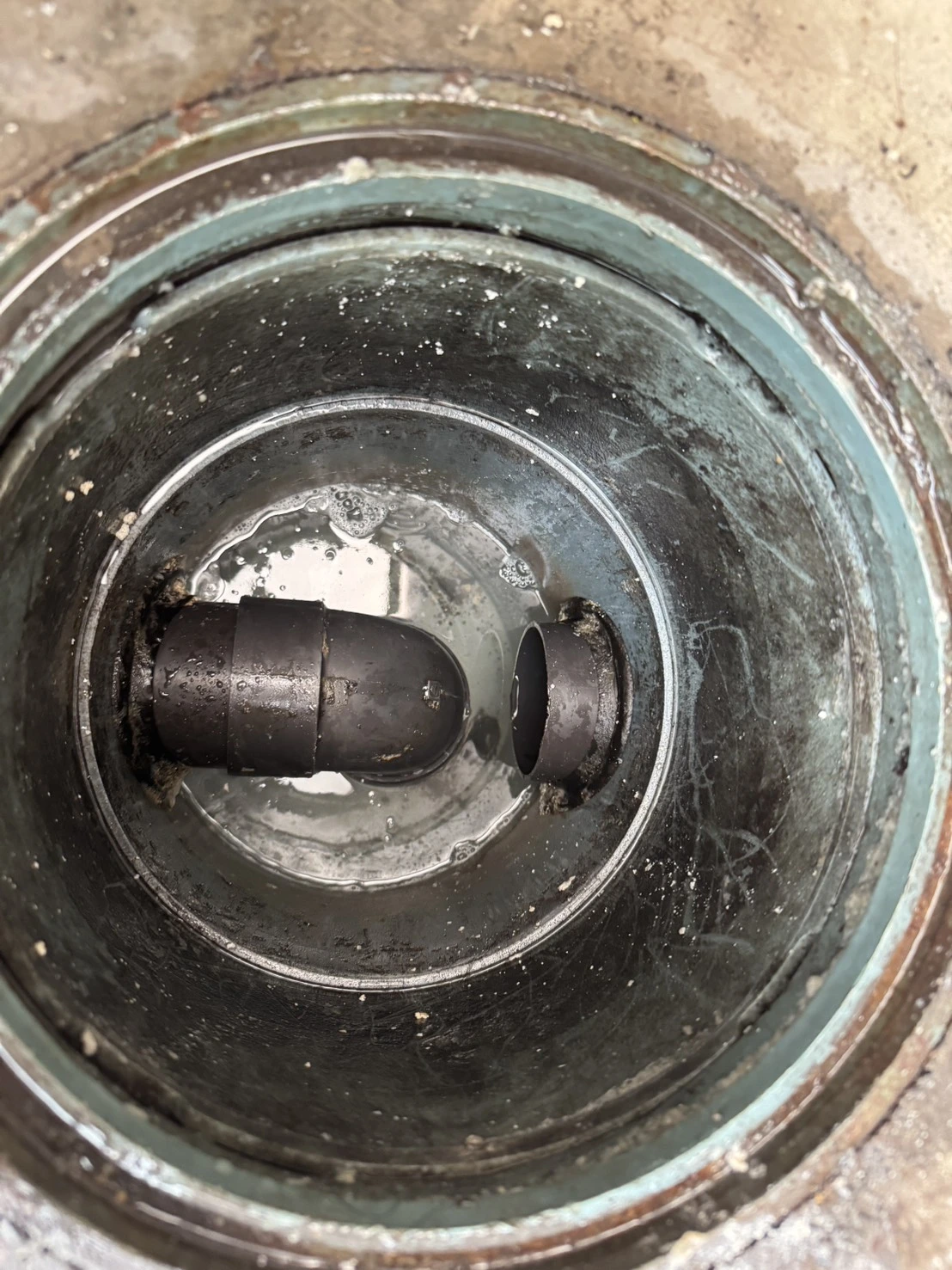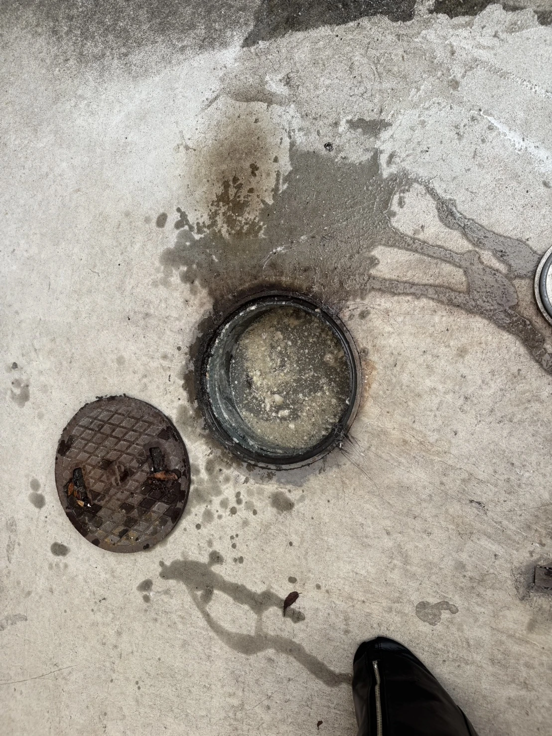 現地を確認したところ、排水桝内部に汚れや堆積物が溜まり、流れが悪くなっている状態でした。