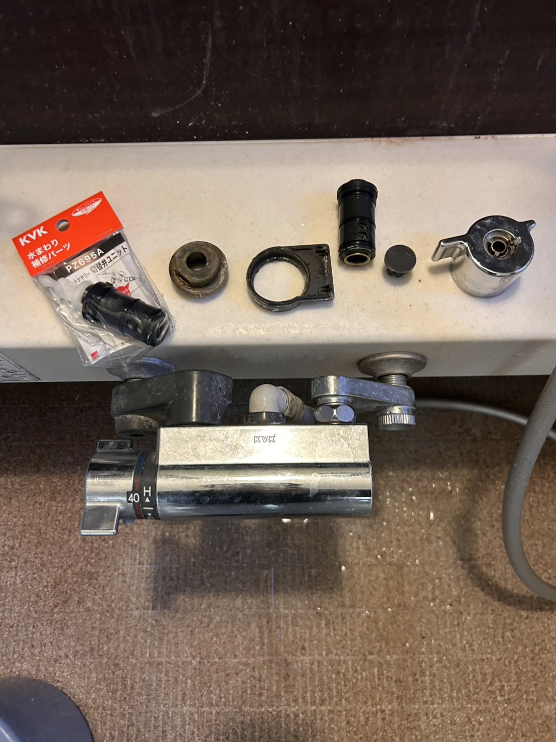 現地で点検を行ったところ、水栓内部の切替部品が経年劣化により正常に作動していない状態でした。