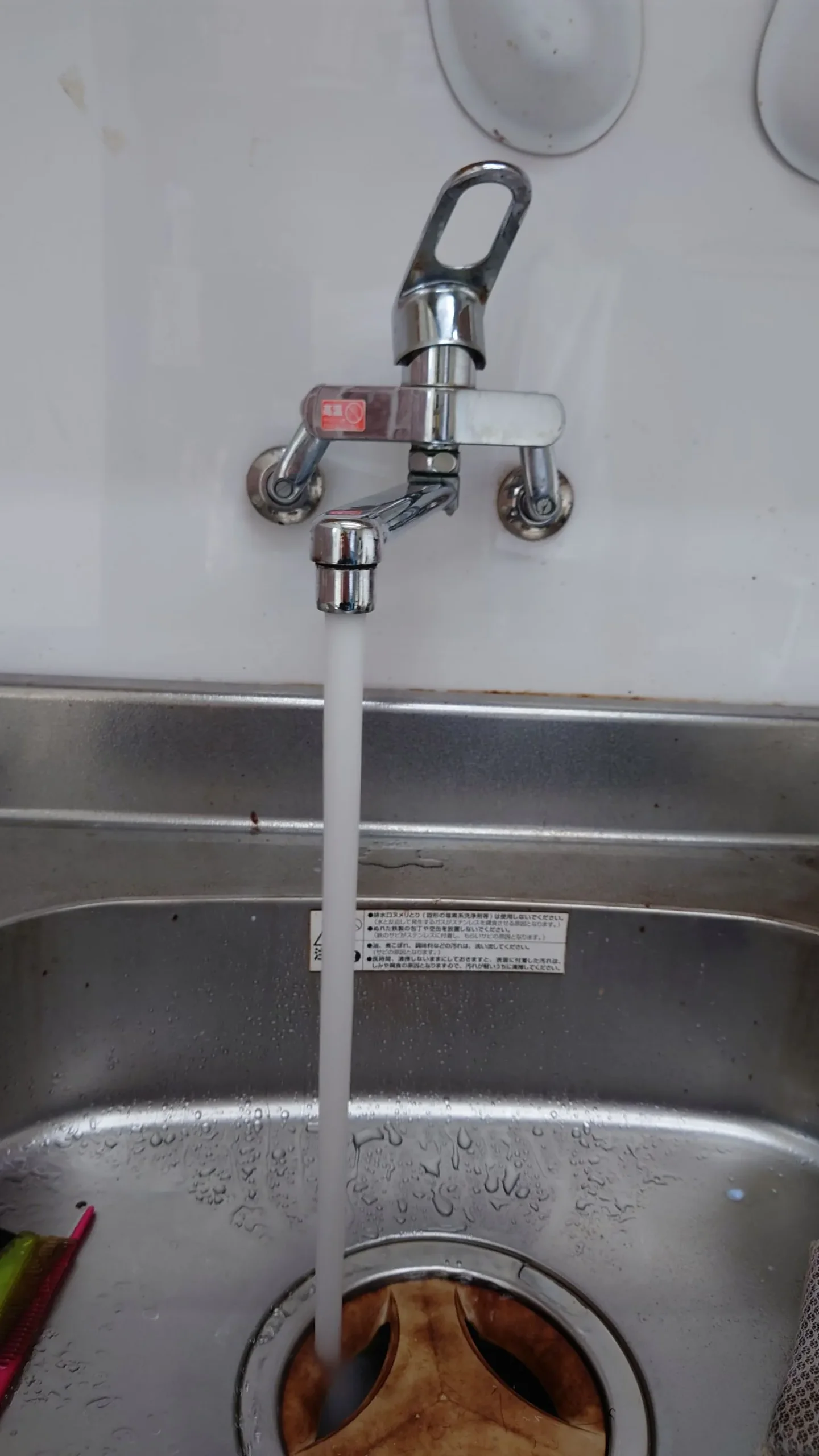 油分や細かなゴミが蓄積し、水の流れが悪くなったことで負荷がかかっていた状況です。