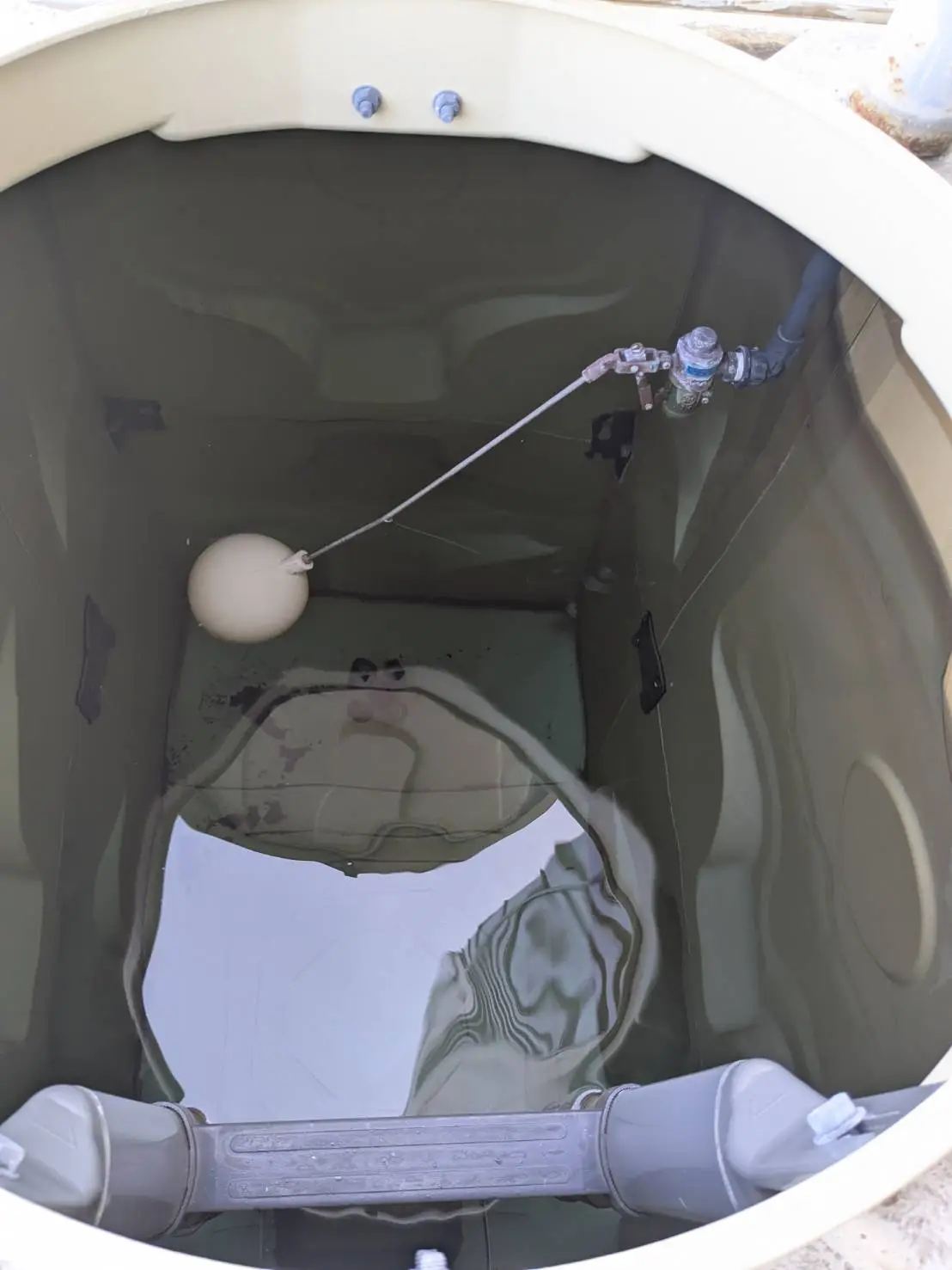 外から聞き慣れない音がして確認したところ、貯水槽のアラームがずっと鳴り続けている状態でした。