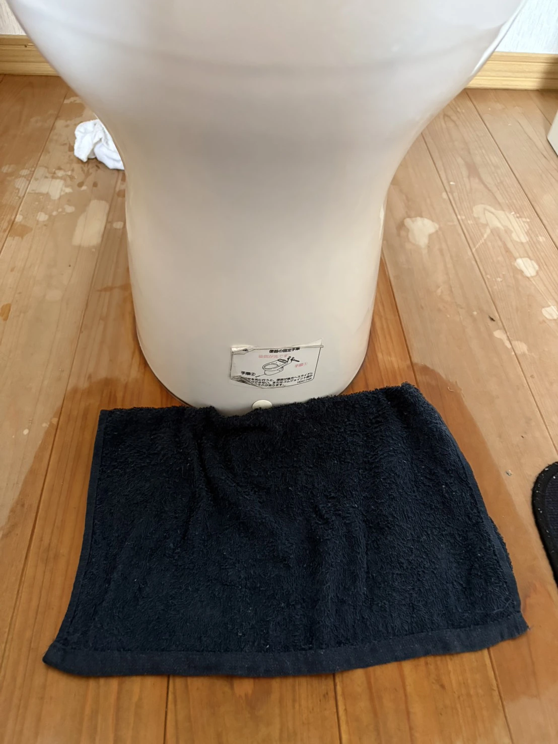 トイレの便座付近から水がポタポタと落ちるようになり、最初はタオルで対応していましたが、だんだん追いつかなくなってしまいました。