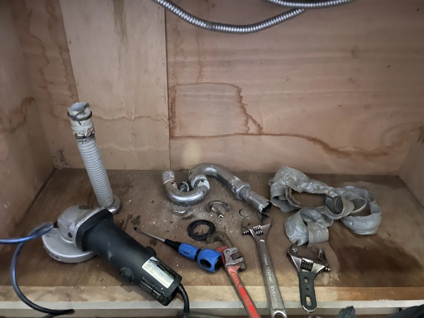 現地にて状態を確認したうえで、金属製洗面トラップ一式の解体作業を行いました。