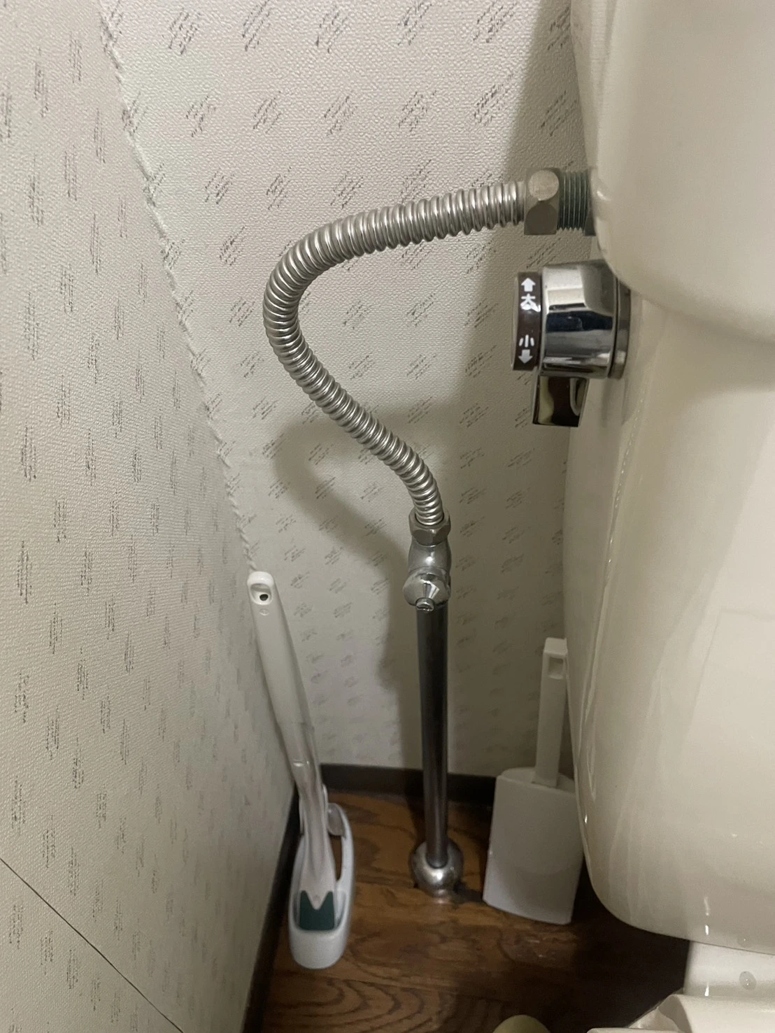 今回はトイレのウォシュレット給水接続部からの水漏れで、内部パッキンの劣化が原因でした。