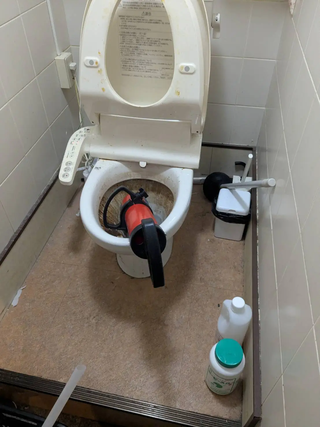 トイレつまりを薬品とローポンプで解消-豊橋市吾妻町