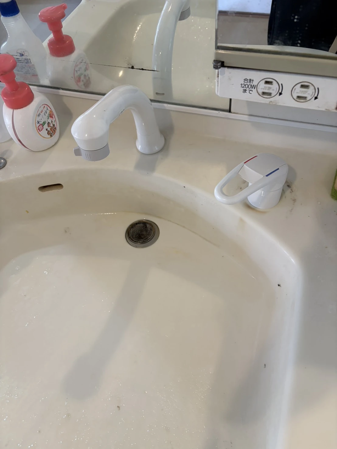 今回の洗面所下配管からの水漏れは、蛇口本体の劣化により接続部へ負担がかかっていたことが原因の一つでした。