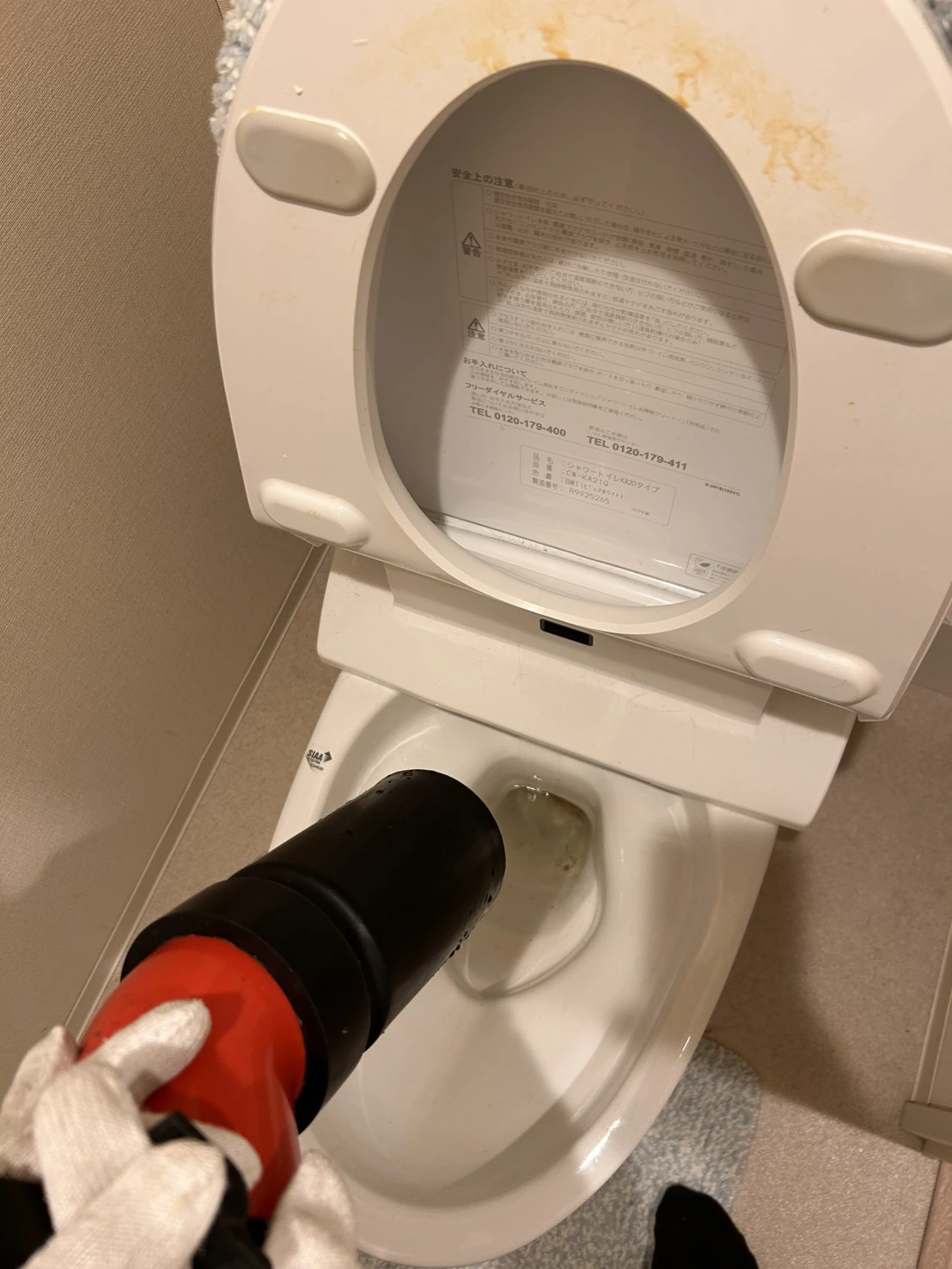 突然のトイレつまり発生!ローポンプ作業でその日にスッキリ解決-西宮市上之町